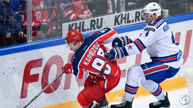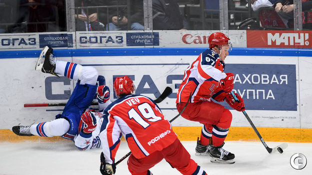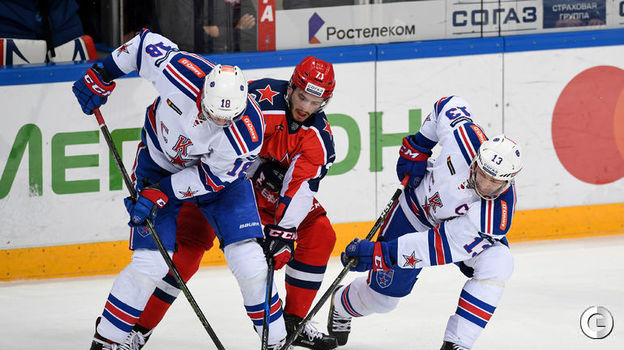 ЦСКА выиграл у СКА (3:1) в матче регулярного чемпионата КХЛ. В составе победителей отличились Сергей Калинин, Константин Окулов и Янник Хансен. У гостей единственную шайбу забросил Динар Хафизуллин. ЦСКА во второй раз выиграл армейское дерби, набрал 42 очка и лидирует в Западной конференции. У СКА 39 очков и второе место.