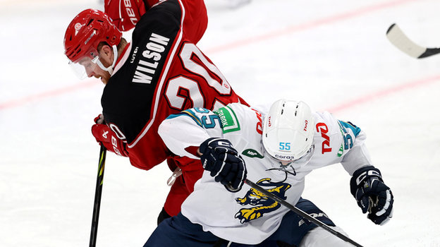 Затем «Витязь» дважды реализовал численное преимущество после удаления Матвея Мичкова (второе удаление 18-летний форвард получил за оскорбление судей сразу после выхода со скамейки штрафников). Уилсон оформил дубль, а после шайбы Дмитрия Кугрышева на восьмой минуте первого периода Третьяка в воротах заменил Михаил Бердин.