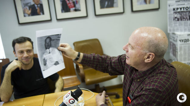 Сегодня обладатель Кубка Стэнли, Кубка Канады, Кубка Гагарина Майк Кинэн, возглавивший китайский "Куньлунь", нанес визит в редакцию "СЭ". Почти 20 лет назад корреспонденты "СЭ" побывали в гостях у знаменитого хоккейного тренера в США. Тогда и сегодня Кинэн не отказал в удовольствии сфотографироваться с номером нашей газеты.
