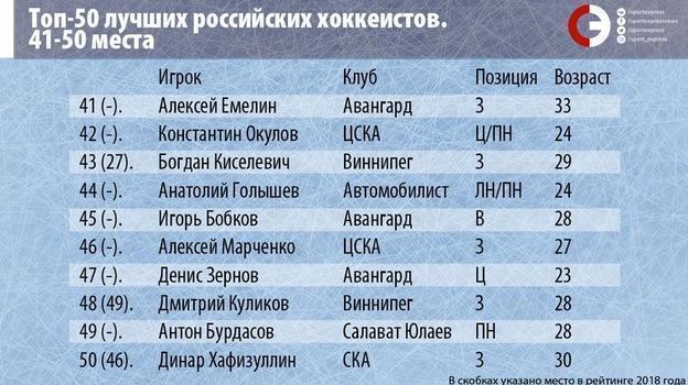 Хоккейный сезон почти завершен. Осталось дождаться лишь окончания финальной серии Кубка Стэнли. Как и год назад, в начале июня мы подводим итоги для российских хоккеистов, формируя рейтинг наших лучших 50 игроков – вне зависимости от того, в какой лиге они выступали.