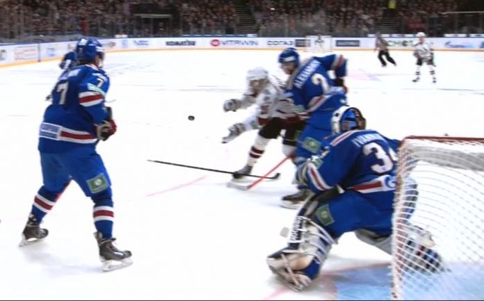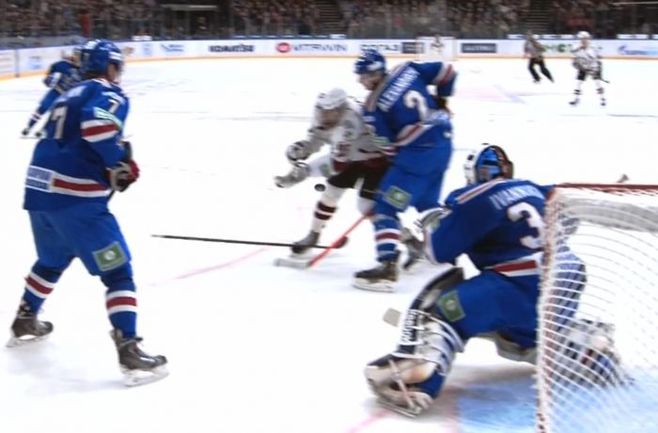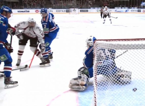На 25-й минуте матча нападающий СКА Панарин броском со средней дистанции попал, как показалось, в перекладину ворот рижан. Судьи встречу не остановили. Свисток прозвучал только спустя 16 секунд. За это время игра успела переместиться в зону хозяев и вернуться к владениям Масальскиса. Все повторы красноречиво свидетельствовали, что гол был: шайба после броска кандидата в сборную России угодила в видеокамеру, размещенную в воротах. Справедливость восторжествовала – 1:0 в пользу СКА. Переигранное время отмотали назад.
