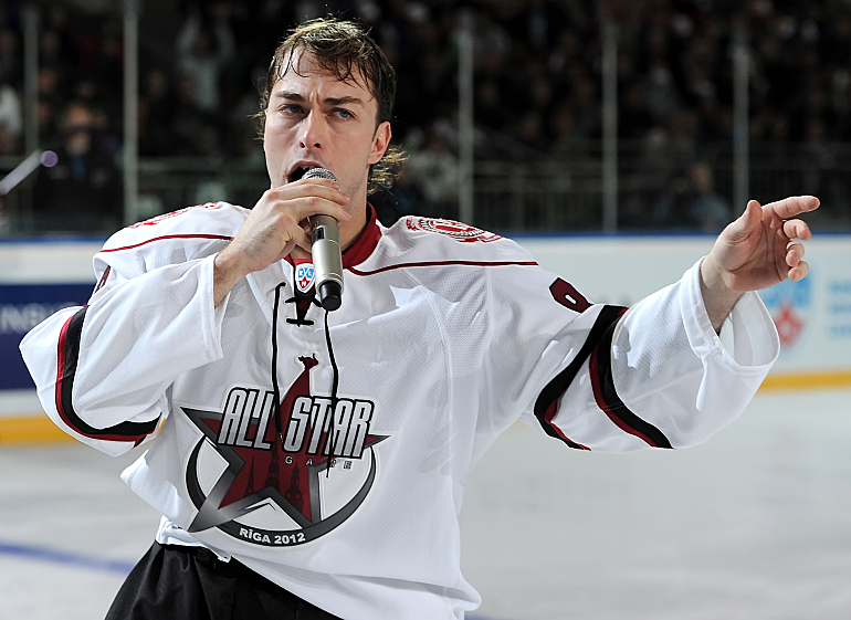 21 февраля 2012 года. Матч звезд КХЛ. Рига. Певец Михаил АНИСИН. Фото - Юрий КУЗЬМИН, photo.khl.ru