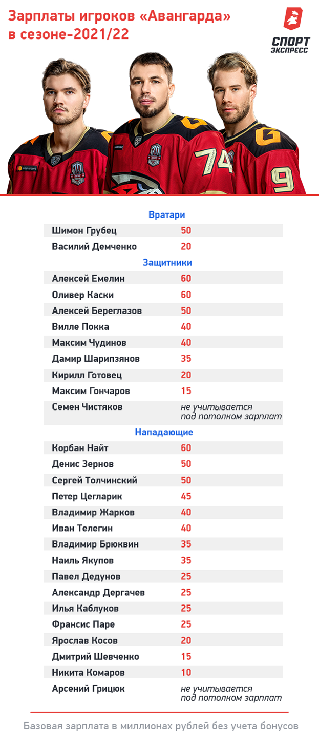 После победного плей-офф омичи логично не стали отказываться от чеха Шимона Грубеца, который в кубковых матчах крайне редко ошибался и во многом определил исход семиматчевой бойни с «Ак Барсом» в финале «Востока». Формально зарплата 30-летнего вратаря, подписавшего новый двухлетний контракт, выросла больше чем в три раза — с 15 до 50 миллионов рублей. Нехилый скачок, не правда ли?