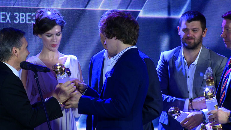Под занавес церемонии закрытия сезона КХЛ-2014/15 названа символическая сборная звезд чемпионата по выбору тренеров клубов. Приз "Золотой шлем" получили: вратарь Андерс Нильссон ("Ак Барс"), защитники Никита Зайцев (ЦСКА), Максим Чудинов (СКА), нападающие Александр Радулов (ЦСКА), Стив Мозес ("Йокерит"), Артемий Панарин (СКА). Статуэтки присутствующим номинантам вручил президент ИИХФ Рене Фазель.