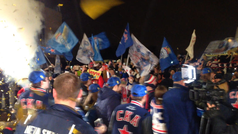 Болельщики СКА встретили команду после победы в Кубке Гагарина в аэропорту Пулково. Питерцы в пятом матче финальной серии обыграли магнитогорский "Металлург" (5:3, 4-1) и во второй раз завоевали главный трофей КХЛ.