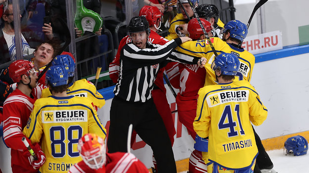 Гол Войнова, Дюжев и Поздняковы на трибуне, драка на льду: Россия обыграла Швецию на Кубке Первого канала