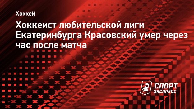 Хоккеист любительской лиги Екатеринбурга Красовский умер через час после матча