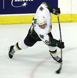 Прошедшие три сезона Золотой Бретт провел в клубе "Даллас Старз", в составе которого в 1999 году выиграл первый в своей карьере Кубок Стэнли. За карьеру в НХЛ Халл наколотил 649 шайб, что является 7-м результатом в истории. Халл всего 2 шайбы уступает показателю центрфорварда "Рейнджерс" Марка Мессье. |