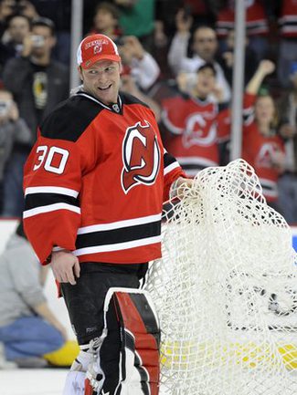 Голкипер "Нью-Джерси" Мартин Бродер, побивший сегодня рекорд Патрика Руа