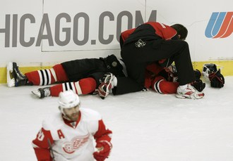 "Детройт" и "Чикаго" в пятом матче финала Западной конференции (счет в серии - 3-1 в пользу "Ред Уингз") не смогут рассчитывать на двух ключевых своих команд. Если хозяева встречи в Городе моторов остались без травмированных лучших защитника и форварда оборонительного плана - капитана Никласа Лидстрема и Павла Дацюка, то гостям придется пытаться организовать шестую игру в Чикаго без основного вратаря Николая Хабибулина и лидера команды по набранным очкам Мартина Гавлата. |