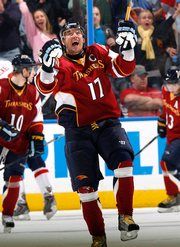 Капитан "Атланты" Илья Ковальчук, который, несмотря на трещину в стопе, выходил на лед в последних трех матчах регулярного чемпионата, вновь пропустил тренировку своей команды. Как сообщает Atlanta Journal-Constitution, пока причина отсутствия российского нападающего на занятии неизвестна. Возможно, тренеры "Трэшерз" просто не хотят лишний раз беспокоить ногу лидера команды. Вместо Ковальчука в "тройке СНГ" вместе с Николаем Антроповым и Максимом Афиногеновым тренировался восстановившийся после травмы Брайан Литтл. Кроме этого, лазарет "Атланты" покинул чех Павел Кубина, который пропустил прошлый матч из-за травмы нижней части тела.