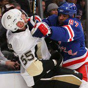 Знаменитый тафгай "Рейнджерс" Дональд Брашир был выставлен на драфт отказов, а после того, как его без компенсации не взяла ни одна команда НХЛ, был отправлен в фарм-клуб. Очевидно, что карьера 38-летнего ветерана, который еще в прошлом году в роли телохранителя Александра Овечкина считался лучшим бойцом НХЛ, близка к закату.
