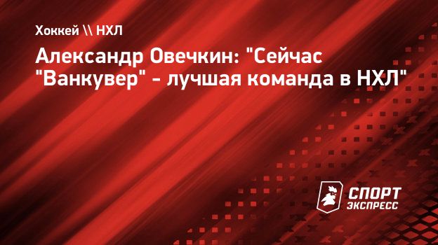 Александр Овечкин: "Сейчас "Ванкувер" - лучшая команда в НХЛ"