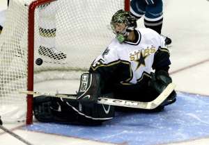 Шайбы: Крог - 3 (ОЗОЛИНЬШ), 13:08 (0:1). Хэтчер - 1 (Модано, Морроу), 17:39 (1:1). Нидермайер - 1 (САЛЕЙ), 24:04 (1:2 - мен.). Руччин - 2 (Леклерк), 28:58 (1:3). Арнотт - 3 (Дален), 36:32 (2:3). Морроу - 1 (Робидас), 57:13 (3:3). Сикора - 1 (Оутс, Леклерк), 140:48 (3:4). |