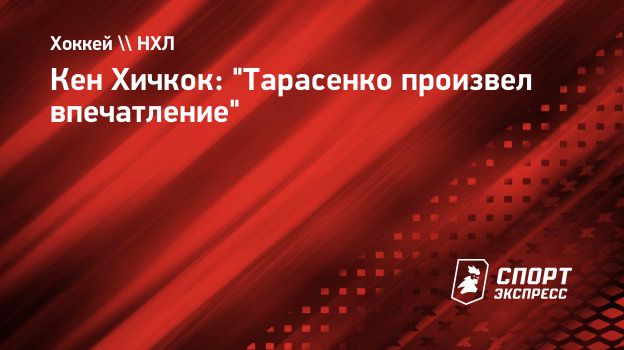 Кен Хичкок: "Тарасенко произвел впечатление"