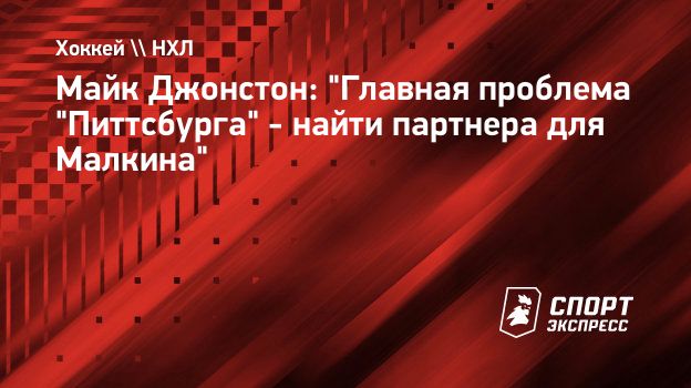 Майк Джонстон: "Главная проблема "Питтсбурга" - найти партнера для Малкина"