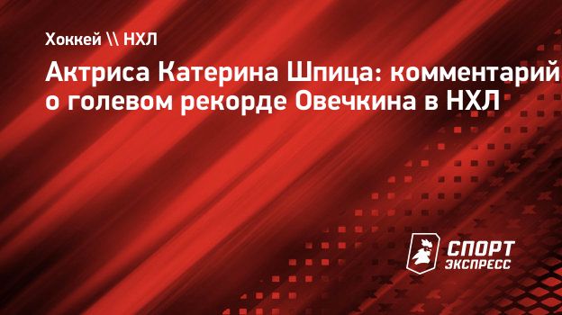 Актриса Катерина Шпица прокомментировала «СЭ» снайперский рекорд нападающего «Вашингтона» Александра Овечкина.