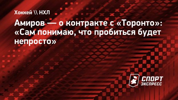 Амиров — о контракте с «Торонто»: «Сам понимаю, что пробиться будет непросто»