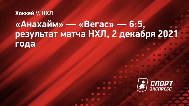 «Анахайм» обыграл «Вегас» в матче регулярного чемпионата НХЛ — 6:5.