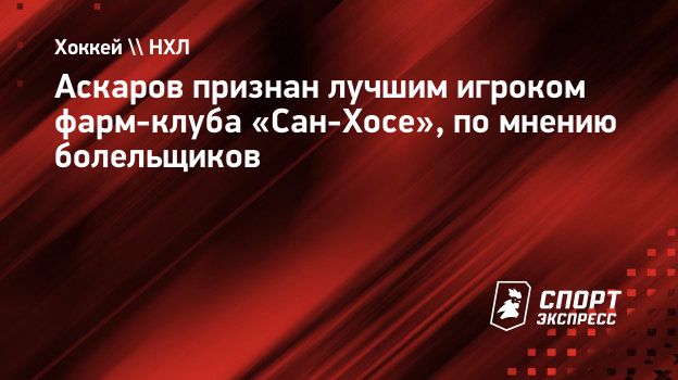 Аскаров признан лучшим игроком фарм-клуба «Сан-Хосе», по мнению болельщиков