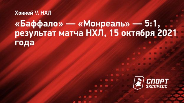 «Баффало» выиграл у «Монреаля» (5:1) в матче регулярного чемпионата НХЛ. «Канадиенс» потерпели второе поражение подряд. Для «Сэйбрз» это была первая игра в сезоне.
