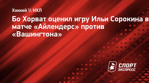 Нападающий «Айлендерс» Бо Хорват прокомментировал игру голкипера команды Ильи Сорокина в матче против «Вашингтона» (3:1) в регулярном чемпионате НХЛ.