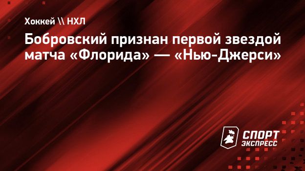 Российский вратарь «Флориды» Сергей Бобровский был признан первой звездой матча регулярного чемпионата НХЛ с «Нью-Джерси» (1:0), сообщает пресс-служба лиги.
