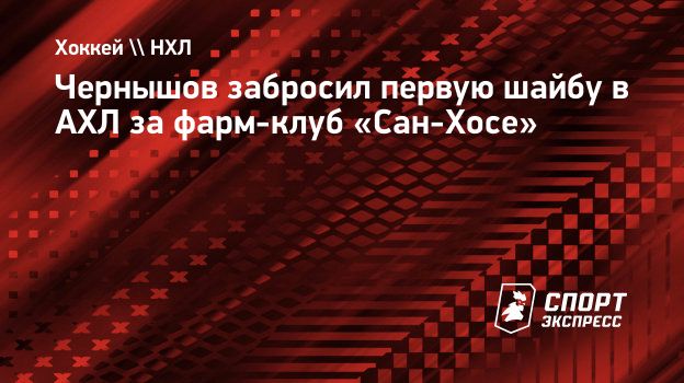 Чернышов забросил первую шайбу в АХЛ за фарм-клуб «Сан-Хосе»