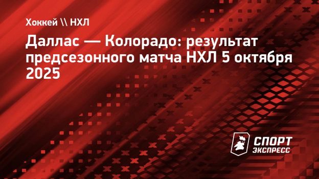 «Даллас» и «Колорадо» провели последний предсезонный матч. «Старз» проведут первую игру в регулярном чемпионате НХЛ-2025/26 10 октября против «Виннипега», а «Эвеланш» встретятся с «Лос-Анджелесом» 8 октября.