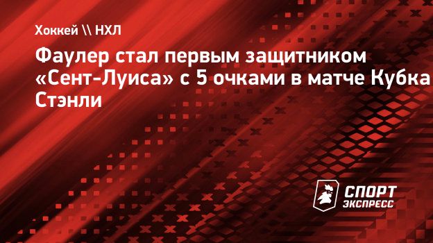 Фаулер стал первым защитником «Сент-Луиса» с 5 очками в матче Кубка Стэнли