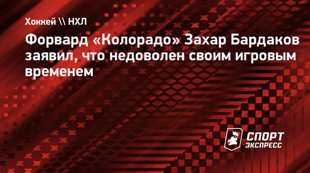 Форвард «Колорадо» Захар Бардаков в эксклюзивном интервью «СЭ» заявил, что недоволен своим игровым временем.