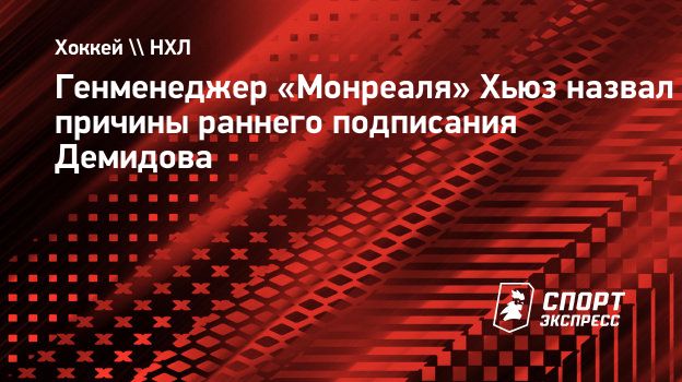 Генменеджер «Монреаля» Хьюз назвал причины раннего подписания Демидова