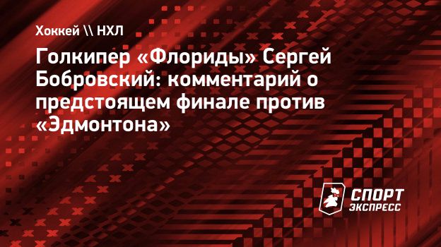 Российский голкипер «Флориды» Сергей Бобровский рассказал о своих ожиданиях от финальной серии плей-офф НХЛ против «Эдмонтона».