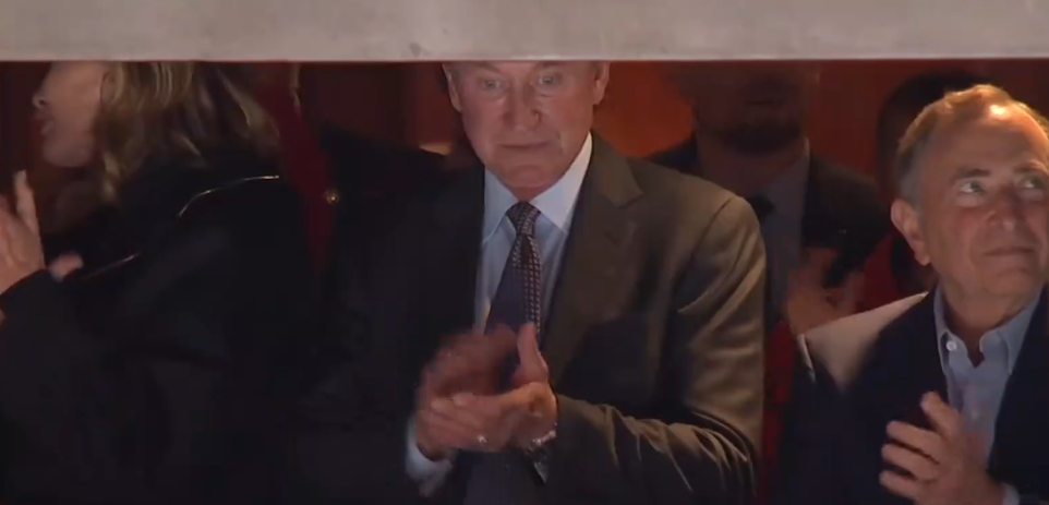 Канадец Уэйн Гретцки и комиссар НХЛ Гэри Беттмэн стоя аплодировали после 894-го гола форварда «Вашингтона» Александра Овечкина.