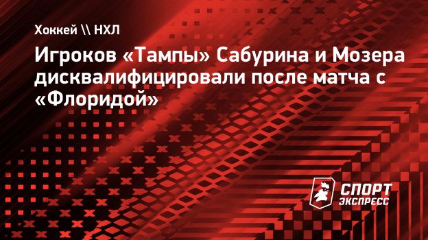 Игроков «Тампы» Сабурина и Мозера дисквалифицировали после матча с «Флоридой»