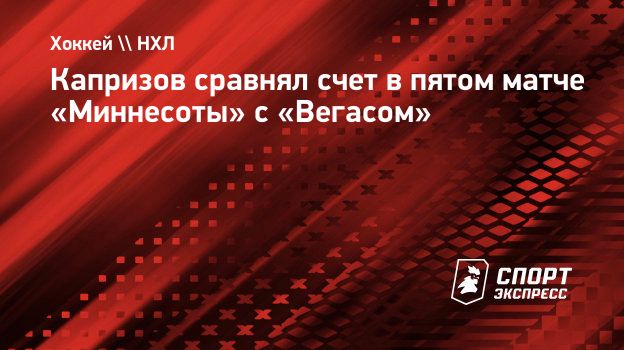 Капризов сравнял счет в пятом матче «Миннесоты» с «Вегасом»