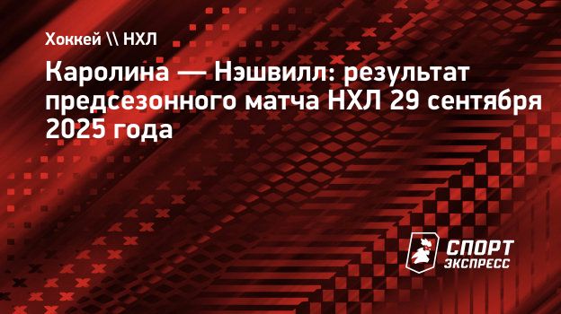 «Каролина» в предсезонном матче НХЛ обыграла «Нэшвилл» со счетом 4:2.