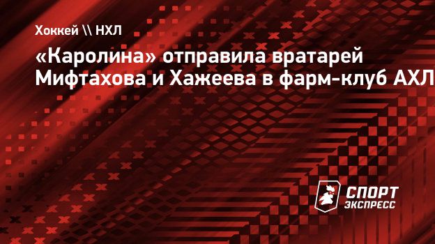 Российские вратари «Каролины» Амир Мифтахов и Руслан Хажеев отправлены в фарм-клуб «Чикаго Вулвз» из АХЛ, сообщает официальный сайт «Харрикейнз».