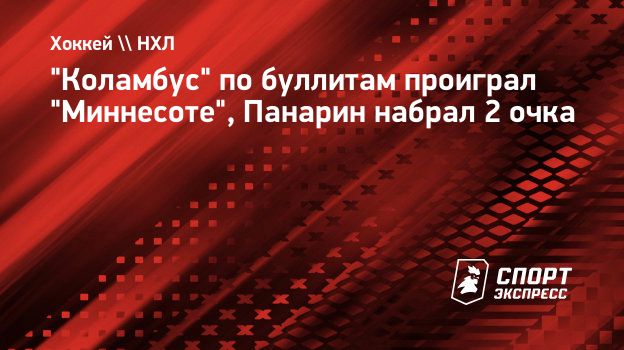 "Коламбус" на своем льду проиграл "Миннесоте" в матче регулярного чемпионата НХЛ. Российский нападающий хозяев Артемий Панарин забросил одну шайбу и сделал одну результативную передачу. Кроме того, он был единственным из своей команды, кто в серии буллитов поразил ворота соперника.