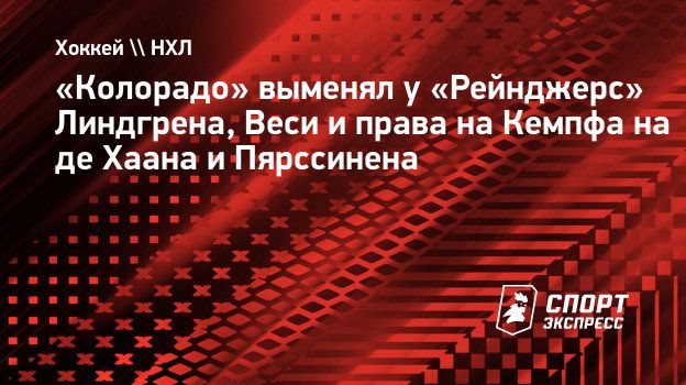 «Колорадо» выменял у «Рейнджерс» Линдгрена, Веси и права на Кемпфа на де Хаана и Пярссинена