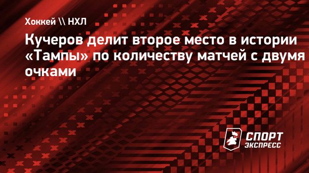 Кучеров делит второе место в истории «Тампы» по количеству матчей с двумя очками