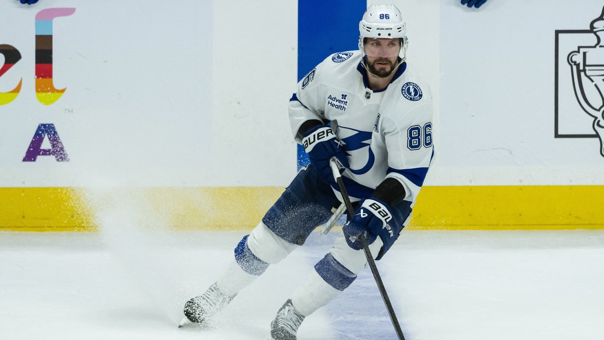 Форвард «Тампы» Никита Кучеров отметился результативной передачей в матче регулярного чемпионата НХЛ против «Рейнджерс».