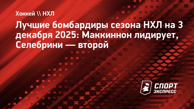 Лучшие бомбардиры сезона НХЛ на 3 декабря 2025 года: