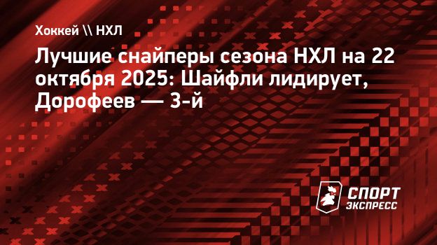 Лучшие снайперы НХЛ на 22 октября: Шайфли лидирует, Дорофеев — 3-й