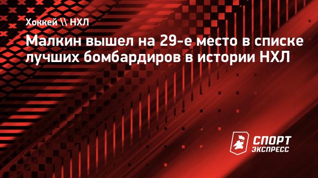 Российский форвард «Питтсбурга» Евгений Малкин поднялся на 29-е место в рейтинге лучших бомбардиров за всю историю НХЛ.
