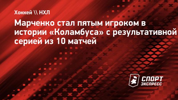 25-летний россиянин продлил результативную серию в НХЛ до десяти игр. Как сообщает пресс-служба лиги, Марченко стал пятым игроком в истории «Коламбуса», чья результативная серия составила 10 или более матчей.