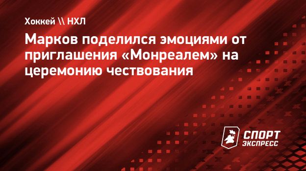 Бывший защитник «Монреаля» Андрей Марков рассказал об эмоциях от получения приглашения на церемонию чествования перед матчем команды в регулярном чемпионате НХЛ.