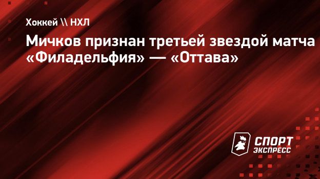 Мичков признан третьей звездой матча «Филадельфия» — «Оттава»