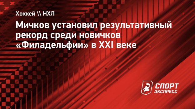 Российский нападающий «Филадельфии» Матвей Мичков установил результативный рекорд для новичков клуба в XXI веке.