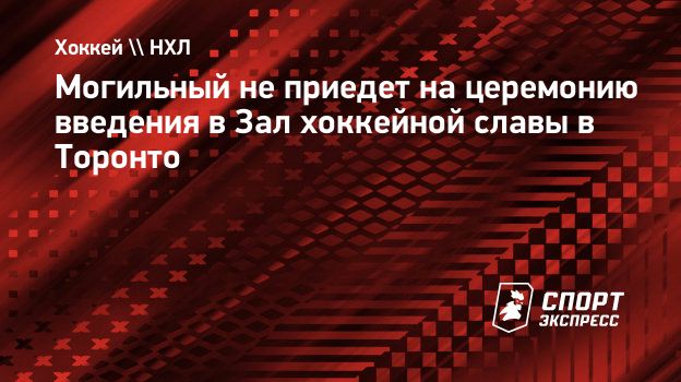 Могильный не приедет на церемонию введения в Зал хоккейной славы в Торонто